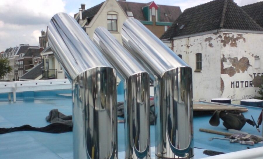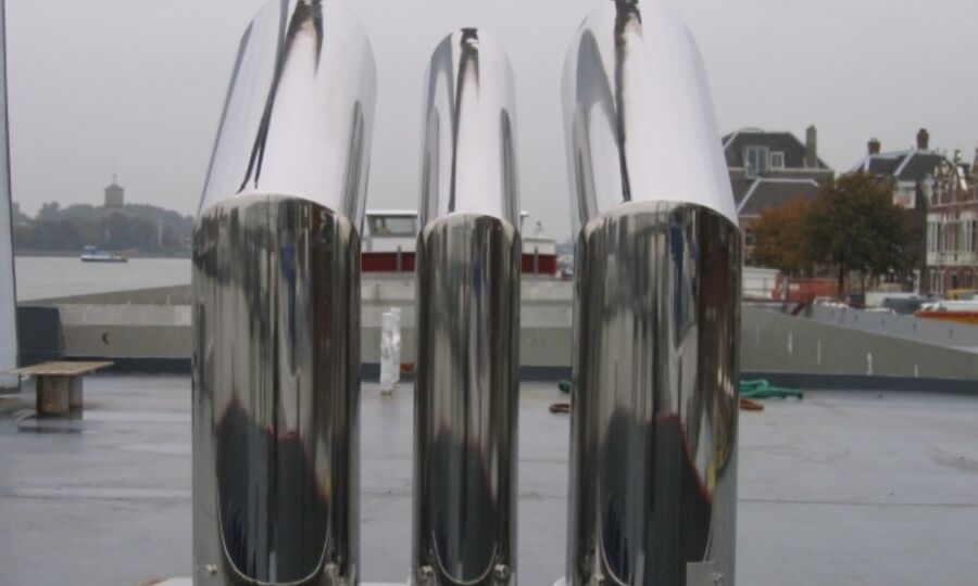 Inmiddels heeft Veratio al vele scheepsuitlaten mogen produceren. Zowel in een geknikte uitvoering als een uitvoering met een radius. Het materiaal is roestvaststaal 316 hoogglans gepolijst. De uitlaten voorzien we tevens van een isolatielaag tussen de binnen en de buitenmantel. Natuurlijk kunnen we uitlaten op locatie aan de scheepshuid lassen en afwerken.